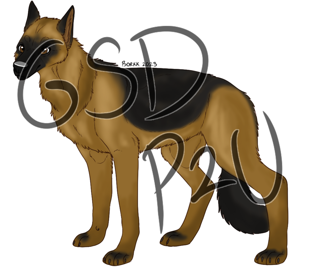 A German Shepherd Dog lineart base for you to colour! Whether for adopts or for your own characters, it'll make a cute addition to any art collection.